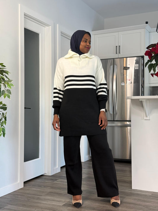 Two tone Zipped neck Co Ord Set - Black