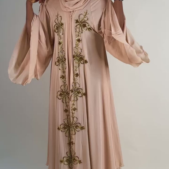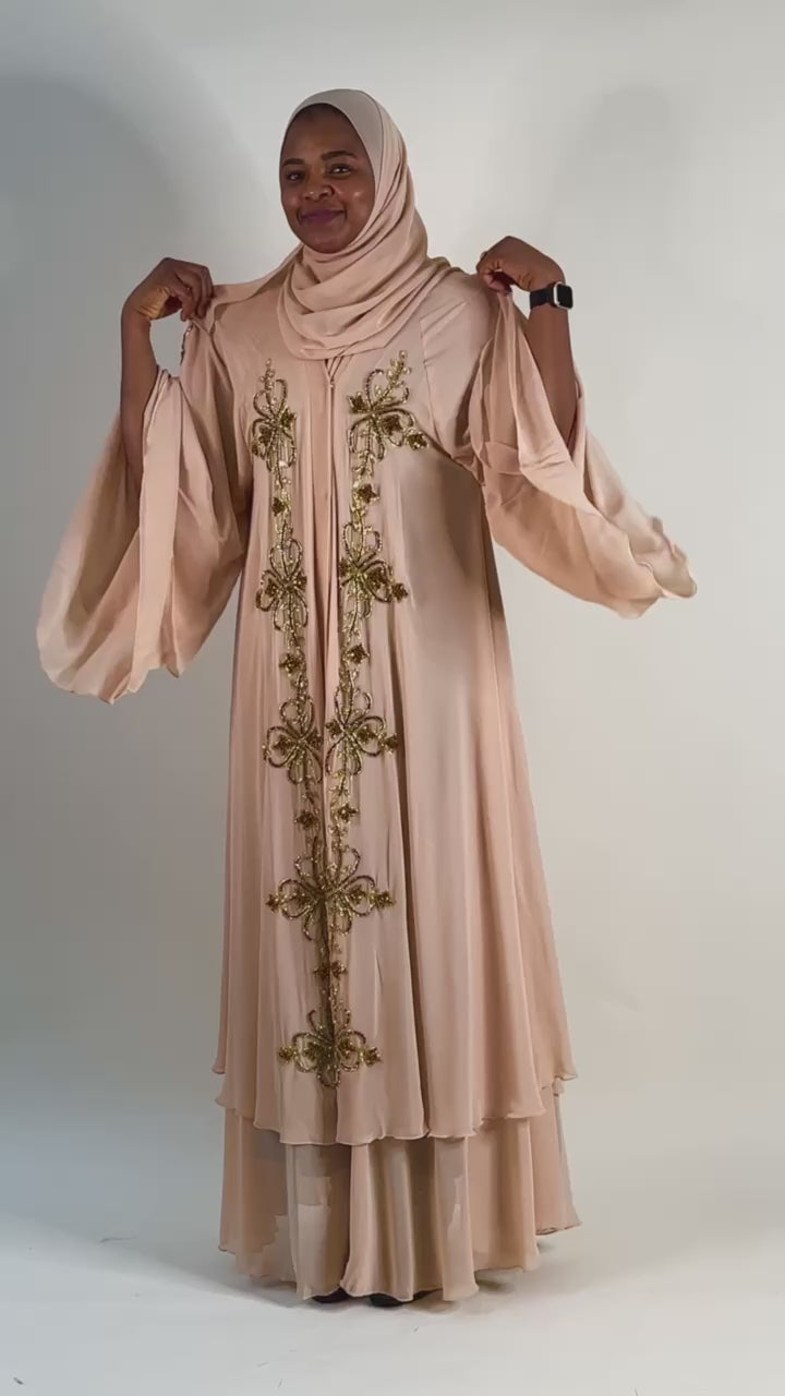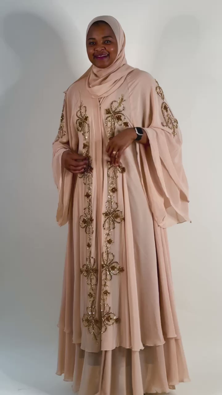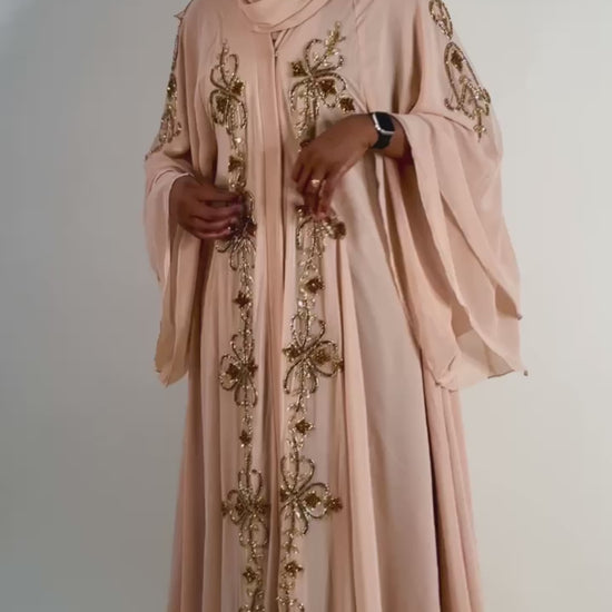 Looking for an abaya for an event? The Yasmin abaya will make you feel fabulous and expressive with its luxurious heavy hand-beaded work over a doubled chiffon fabric.